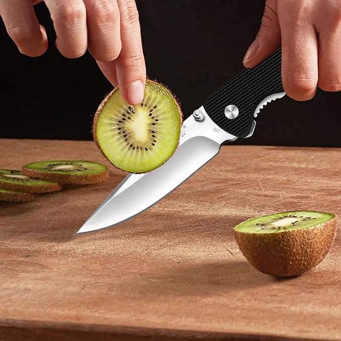 - EXTREMELY SAFE AND RELIABLE--Our folding pocket knife is built with liner locking system that always keeps the blade securely in place, and prevents the lock bar wiggled or blade unexpectedly closed to ensure you in security during use, and the convenient belt clip that allows for easy and discreet daily carrying