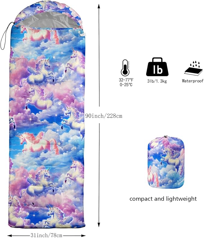 - Stars Clouds Great For All Seasons- Our camping sleeping bags are designed to give you a good night's sleep. Ideal for spring, summer, fall, and winter, rated from 32°F to 77°F (optimal comfort temperature is 50°F to 65°F). Stay comfortable and warm in any condition at normal altitude. Can be used for any outdoor adventure, class camping, summer camps, couch surfing, indoor blanket, and as an emergency blanket for vehicles.