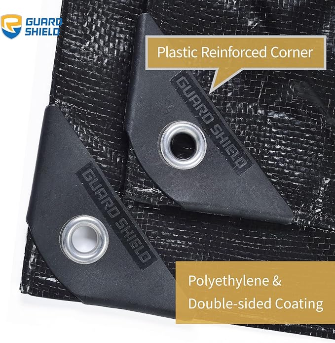 GUARD SHIELD Black Tarp 10x12 Feet Waterproof Tarps Lightweight Camping Tarp Outdoor Multi Purpose Poly Cover 6mil