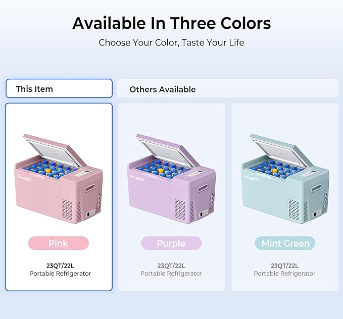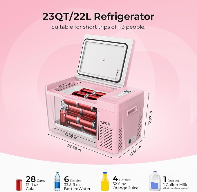 BougeRV Pink 23Quart Portable Refrigerator, 12 Volt Fridge 22L, Portable Freezer Compressor Cooler 12/24V DC 110~240 Volt AC for Truck Van RV Camper -8℉~50℉