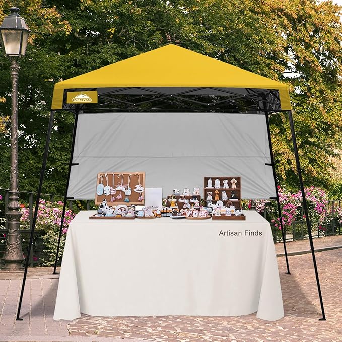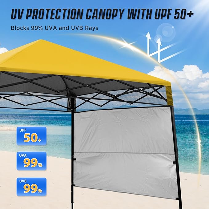 EAGLE PEAK 8x8 Pop Up Canopy Tent with Sidewall, Compact, Portable Slant Leg Instant Sun Shelter for Beach, Sports, & Camping, 8x8 Base 6x6 Top, Yellow
