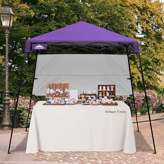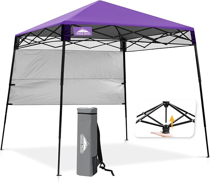 EAGLE PEAK 8x8 Pop Up Canopy Tent with Sidewall, Compact, Portable Slant Leg Instant Sun Shelter for Beach, Sports, & Camping, 8x8 Base 6x6 Top, Purple