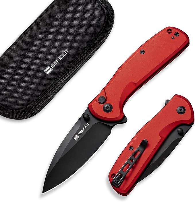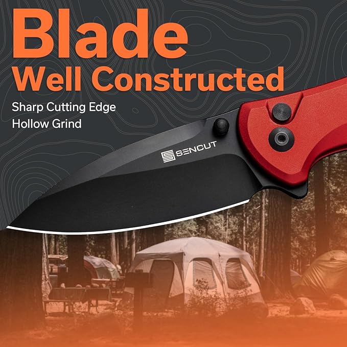 SENCUT ArcBlast Button Lock Knife for EDC, Folding Pocket knife with Aircraft-grade Aluminum Handle and 2.98" 9Cr18MoV Blade, Outdoor Gift for Men and Women S22043B-4 (Red)