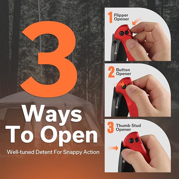 - [Convenient Reversible Clip] Folding knife features a reversible tip-up pocket clip for effortless whittling and cutting convenience, catering to both left- and right-handed users.