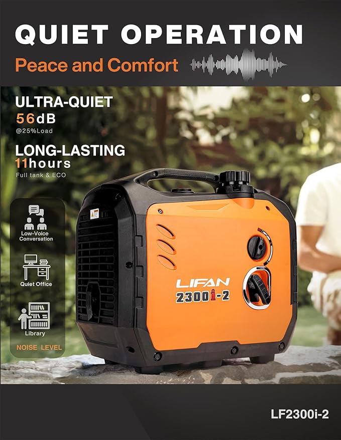 LIFAN 2300W Gasoline Inverter Generator - Portable, Quiet & Fuel-Efficient Power Solution for Home, Camping, RV & Emergency Use with Parallel Capability