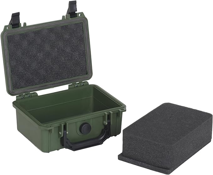 MEIJIA IP67 waterproof hard compact case,Customizable Fit Foam,8.12”x6.56”x 3.56”,Fit Use of Drones, Cameras,Equipments,lens (Green)