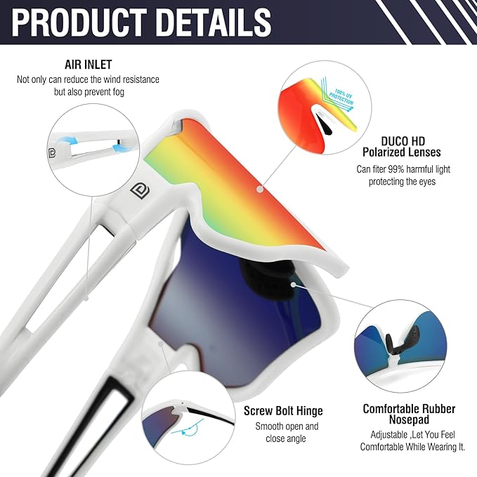 - 【HIGH CONTRAST LENS TECH】-With 20 years functional glasses manufacture experience, DUCO invented high contrast lens tech which makes the vision more clear and reduces eye fatigue, the lens are also scratch and impact resistant.