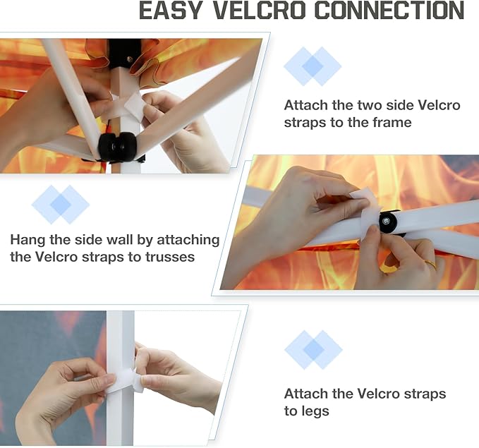 - REMOVABLE SIDEWALL: This outdoor canopy includes one detachable sidewall that secures to the frame with durable, extended Velcro straps. The 150D silver coated oxford canopy top is water resistant, offers UV protection, and meets CPAI-84 fire resistance standards. Enjoy reliable sun shelter and weather protection with heavy duty fabric designed for comfort and safety.
