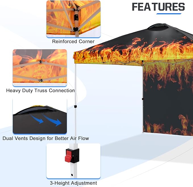 EAGLE PEAK Pop Up Canopy Tent with 1 Sidewall, Easy Setup Event Tent, Outdoor Sun Shade, Wheeled Carry Bag, Stakes and Guy Ropes, Instant Canopy 10x10, Flame