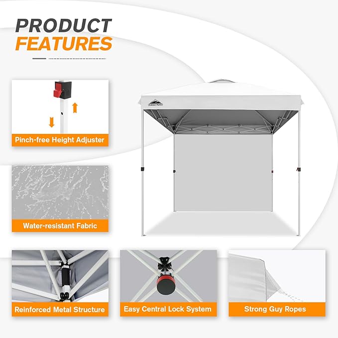 EAGLE PEAK Pop Up Canopy Tent with 1 Sidewall, Easy Setup Event Tent, Outdoor Sun Shade, Wheeled Carry Bag, Stakes and Guy Ropes, Instant Canopy 8x8, White