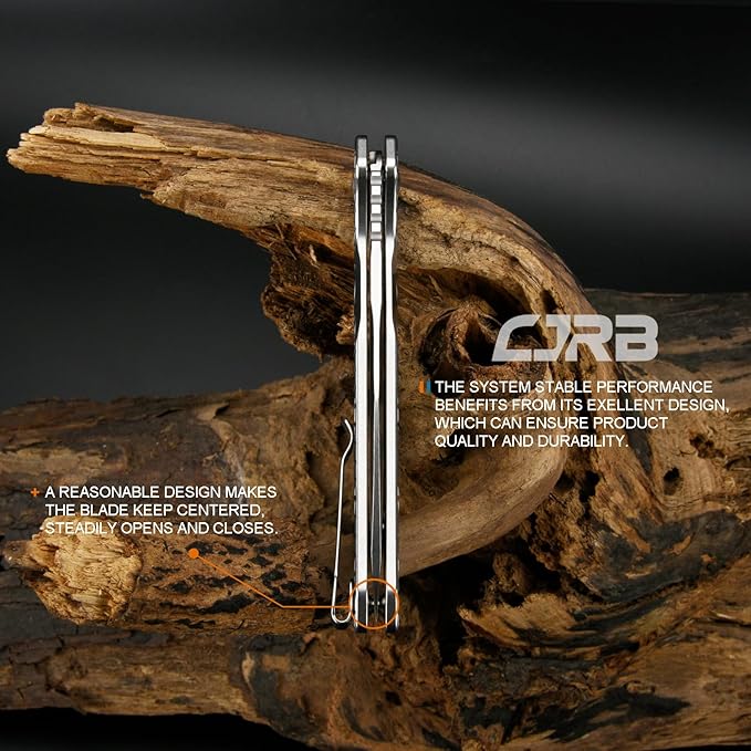 CJRB Frack Pocket Knife, 3.9" AR-RPM9 Steel Blade PVD Coating Frag Pattern Steel Handle EDC Knife, Button Lock Knife for Outdoor Camping Gift, Stonewash (J1931)
