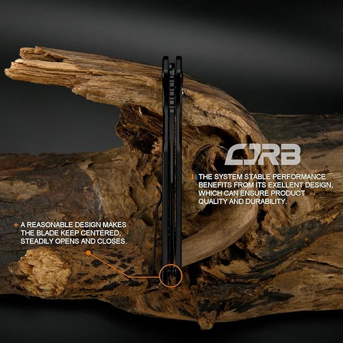 CJRB Frack Pocket Knife, 3.9" AR-RPM9 Steel Blade PVD Coating Steel Handle EDC Knife, Button Lock Knife for Tactical Outdoor Camping Gift, Black (J1931)