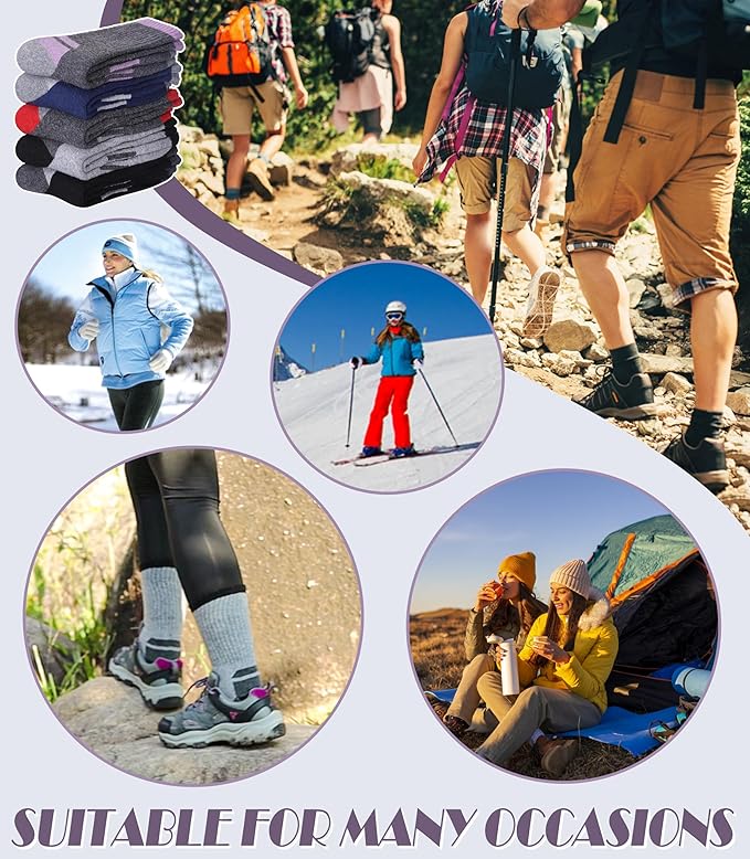 DYW Womens Merino Wool Hiking Socks Thermal Warm Winter Boot Crew Socks Cushion Work Walking Gift Socks 5 Pairs