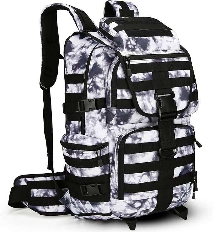 50L Military Tactical Backpack Hiking Waterproof Backpack Large Military Pack 3 Day Assault Pack Molle Bag Rucksack (White Camo)