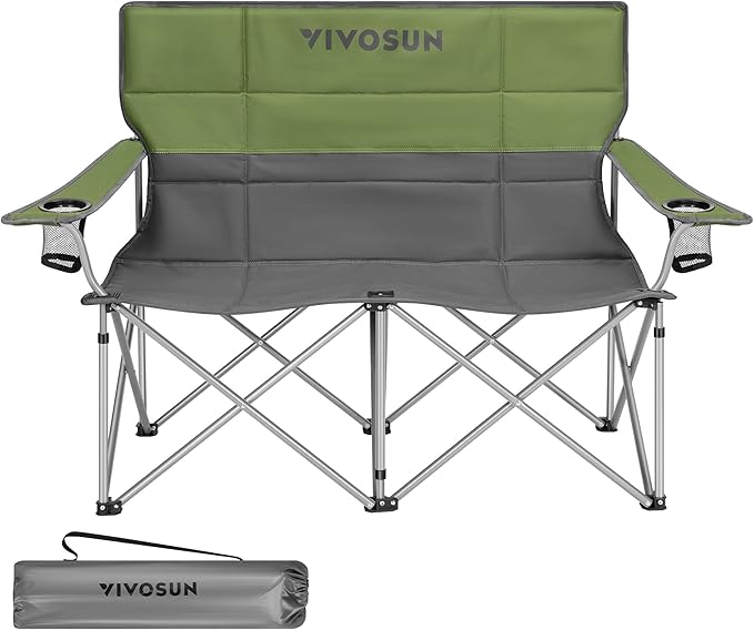 ![[outlets]VIVOSUN Double Camping Chair, Fully Padded Folding Loveseat, Portable Oversized Duo Chair with Storage Cup Holders, Height-adjustable Armrests & Carry Bag, Supports up to 500lbs, Green & Grey](http://camp-nests.com/cdn/shop/files/61rN_gN9HLL._AC_SX679.jpg?v=1757430860&width=1445)