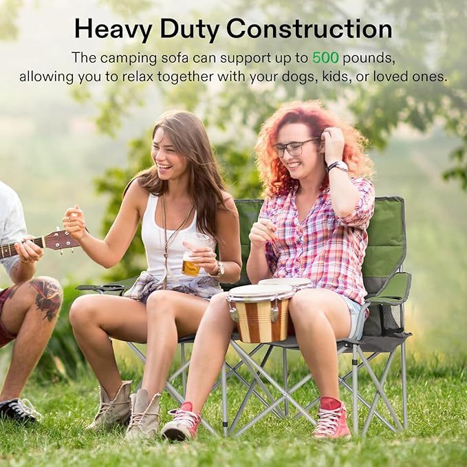 ![[outlets]VIVOSUN Double Camping Chair, Fully Padded Folding Loveseat, Portable Oversized Duo Chair with Storage Cup Holders, Height-adjustable Armrests & Carry Bag, Supports up to 500lbs, Green & Grey](http://camp-nests.com/cdn/shop/files/51_ldk0CwWL._AC.jpg?v=1757430859&width=1445)