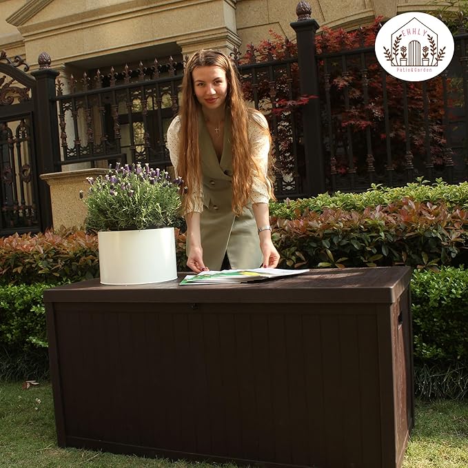 - Wood-Style Design: Our deck box combines the appeal of wood with the durability of resin, providing an elegant and long-lasting storage solution for your outdoor space.