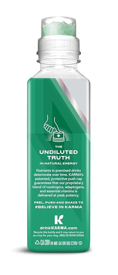 - Karma Energy Drink with Green Tea Caffeine – 150mg of clean, plant-based caffeine for sustained energy without jitters