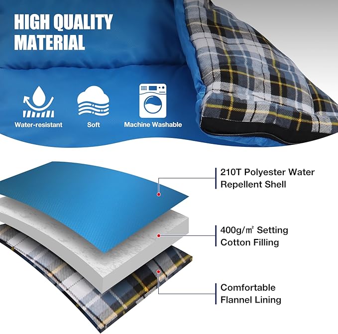 - Comfortable Material: Perfect flannel liner sleeping bags for children aged 5 to 9, high-quality and durable 210T polyester ripstop, with hollow cotton fiber filling, which is soft and comfortable to use. Anti-clip strip prevent zipper snags, while velcro design provides convenience.
