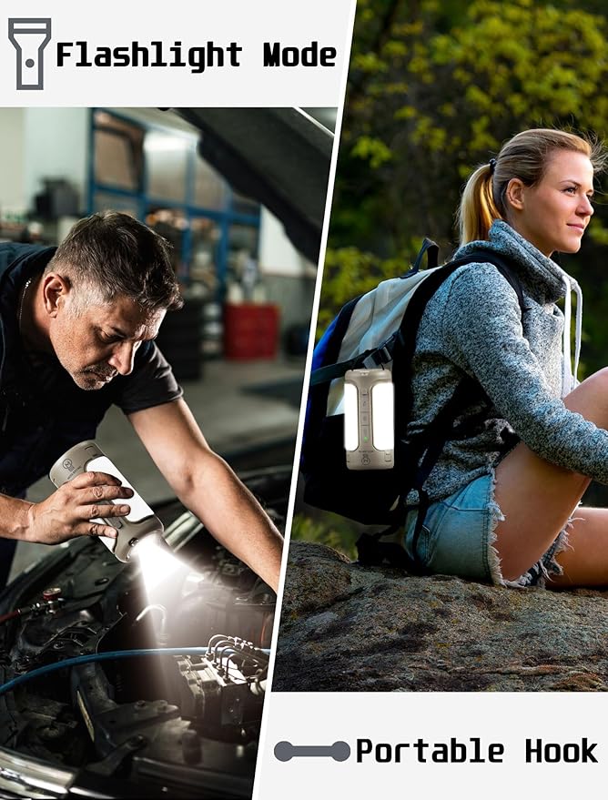 - 10000mAh Rechargeable Battery: MOSLIGHTING Floding Camping Lantern built-in high capacity rechargeable battery, you can use this camping lantern charge your cellphone or other device as emergency portable power bank as well.