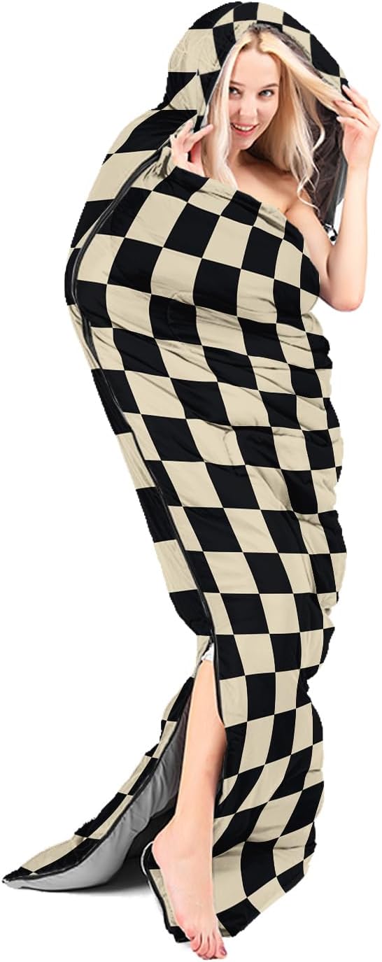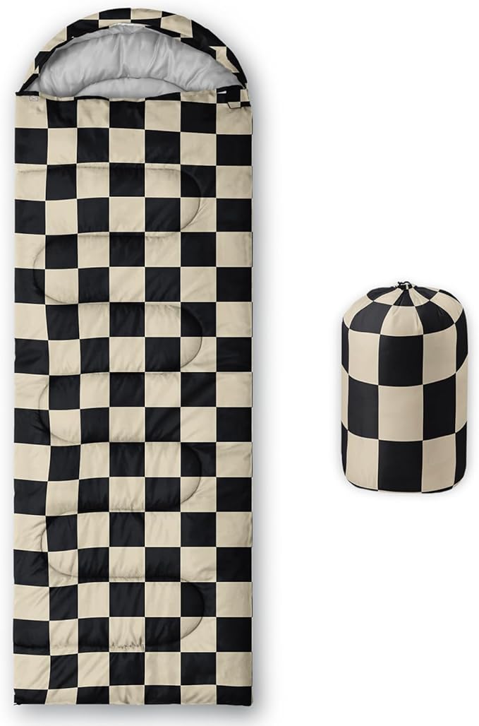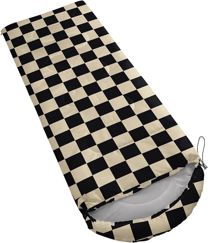 - Black and White Check sleeping bags For All Seasons- Our camping sleeping bags are designed to give you a good night's sleep. Ideal for spring,summer,fall,and winter,rated from 32°F to 77°F (optimal comfort temperature is 50°F to 65°F). Stay comfortable and warm in any condition at normal altitude. Can be used for any outdoor adventure,class camping,summer camps,couch surfing,indoor blanket,and as an emergency blanket for vehicles.
