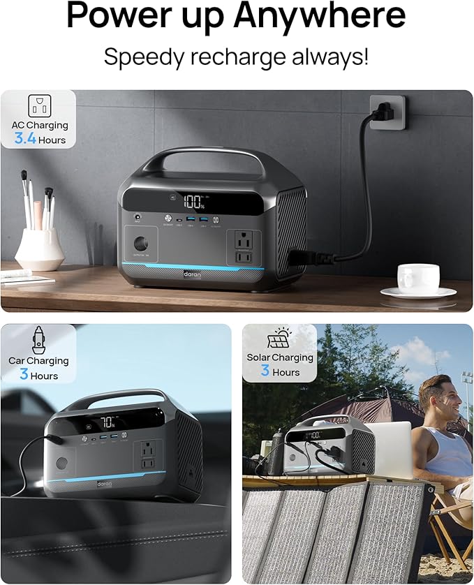 - Solar Generator with 40W Solar Panel: Recharges to 80% in just 2 hours via AC cable, or faster with solar + AC combo; supports car charging and solar input for versatile on-the-go power. perfect for outdoor adventures, and home emergency backup duringblackouts. (Does not include carcharging cables).