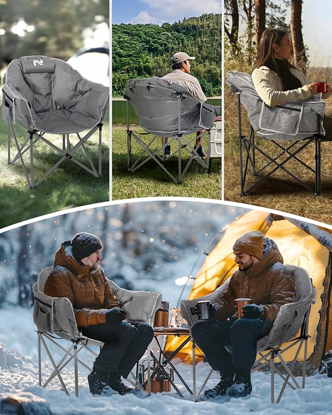 NAIZEA Heated Camping Chair, Oversized Heated Folding Outdoor Chair for Adults with 3 Heat Levels, Portable Foldable Patio Lounge Chair for Sports Outdoors Camp, Battery NOT Included