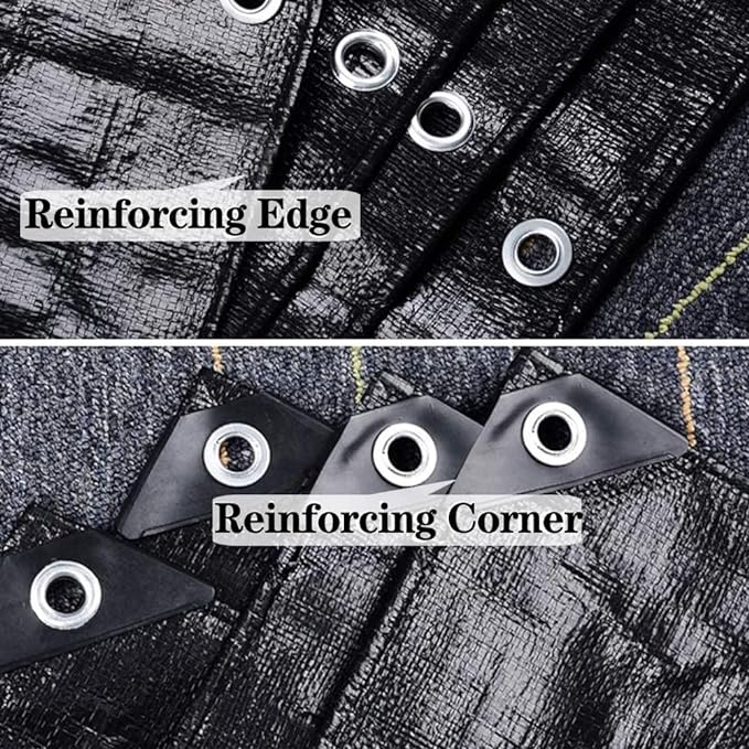 - ALL WEATHER PROTECTION: Tarp offer the high level of protection against various environmental factors,such as rain, snow, wind;Protect your belongings from poor weather conditions,So They are four season outdoor tarp for everyday use.The color of the surface of tarp cover is currently very popular black, and the back is also black. This black coating are water proof against heavy rain wherever you need to keep valuables covered, can withstand the elements outdoors