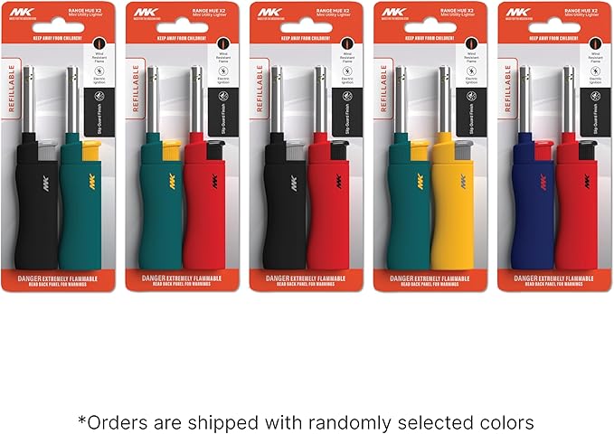 MK Candle Lighter, Butane Refillable Wind-Resistant Flame, 4-Pack for BBQ, Camping, Outdoor Use (Hue-4PC)