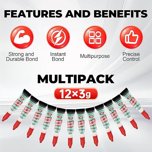 - ๐ฆ Bulk Pack, Fresh Use Every Time: Supplied in 12 ร 3g mini tubes, the CA glue offers both quantity and practicality. The small single-use packaging prevents premature drying after opening, reduces waste, and ensures every application stays fresh, making it cost-effective and easy to use anytime.