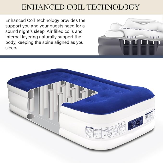 - King Koil's Patented Ultra-Fast High-Speed Pump Technology: Experience rapid inflation with our state-of-the-art high-speed pump, engineered to inflate your twin airbed fully in under 90 seconds. Dedicated inflate/deflate controls ensure effortless setup and takedown.