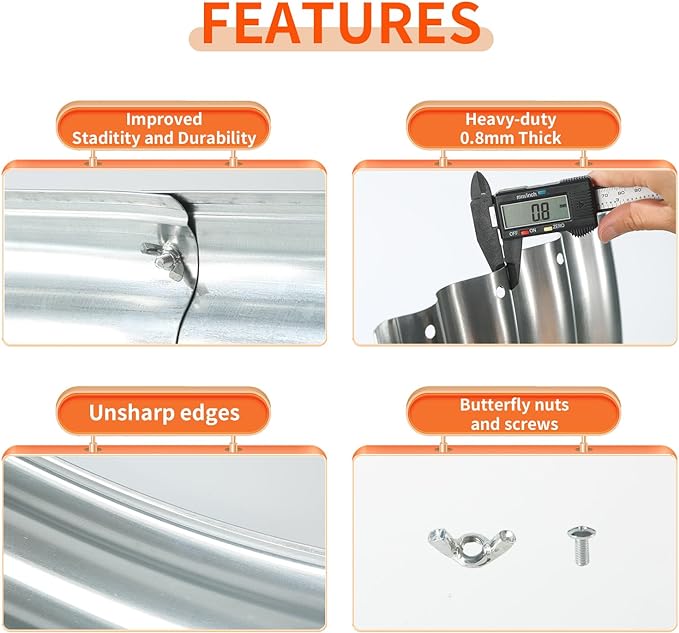 - Durable Construction: The Silver Round Galvanized Fire Pit Ring is made from 0.8MM thick high-quality galvanized steel, ensuring long-lasting durability and resistance to rust or corrosion