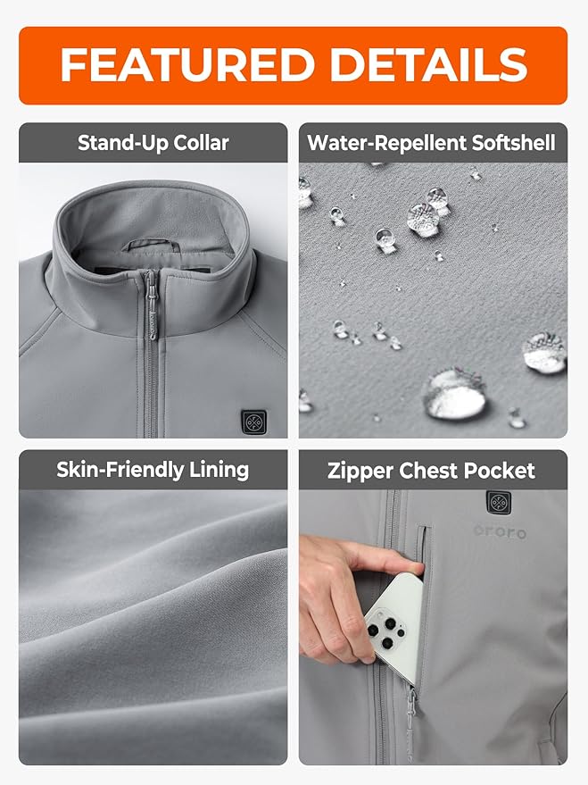 ORORO Men's Heated Softshell Vest with Battery, Soft Shell Heated Golf Vest for Men (Charger Not Included)