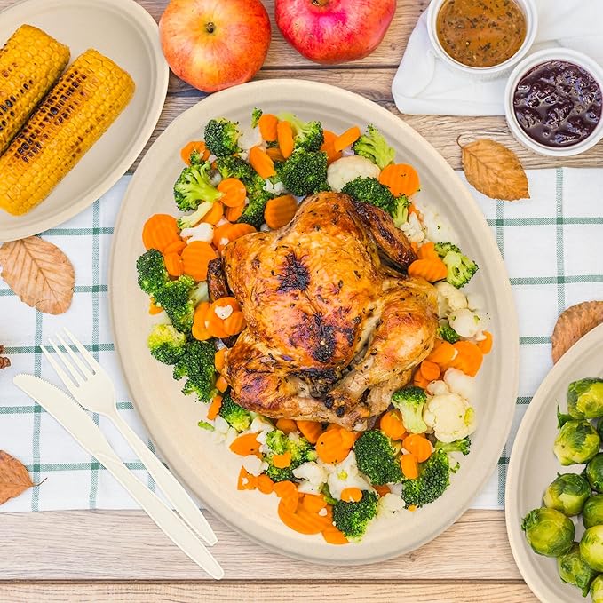 - 100% Natural Material: Our oval paper plates are made from natural bagasse. No BPA, No wax, No gluten. The 12.5-inch oval is perfect for parties and convenient for everyday dining