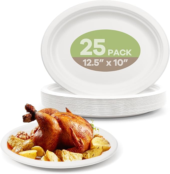 - 100% Natural Material: Our oval paper plates are made from bagasse and contain no BPA, wax, or gluten. The 12.5-inch oval shape is perfect for dinner or lunch and convenient for everyday meals