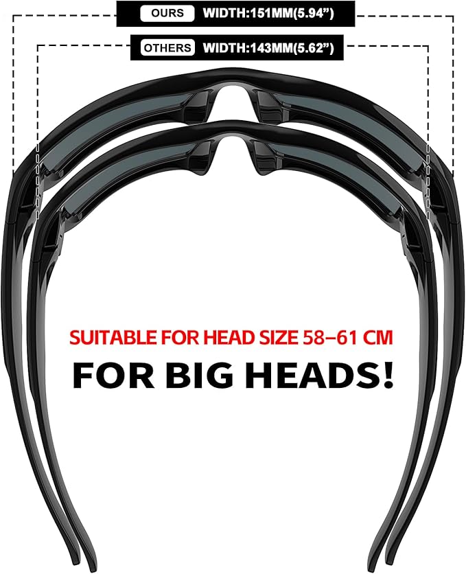 - 【CAUTIOUS】Suitable for head size 58–61 cm!! Frame Front 151mm,Frame Side 125mm,Lens Width 64mm,Lens Height 41mm.