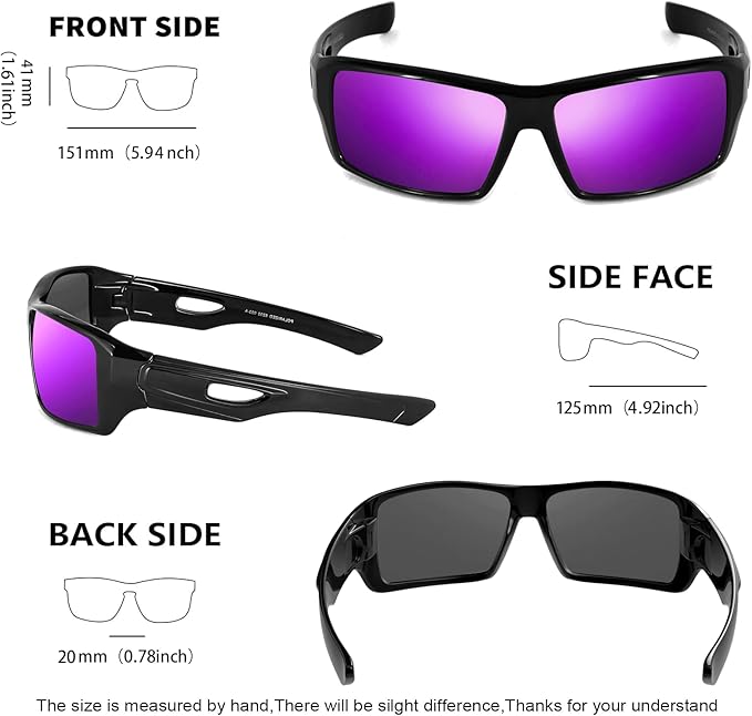 - 【SUITBALE FOR OUTDOOR SPORTS】The sunglasses are the ideal choice for outdoor sports such as cycling,racing,golf,skiing,motorcycle,biking,driving,running,fishing,and ideal protection for mountaineering, hiking or other outdoor activities.