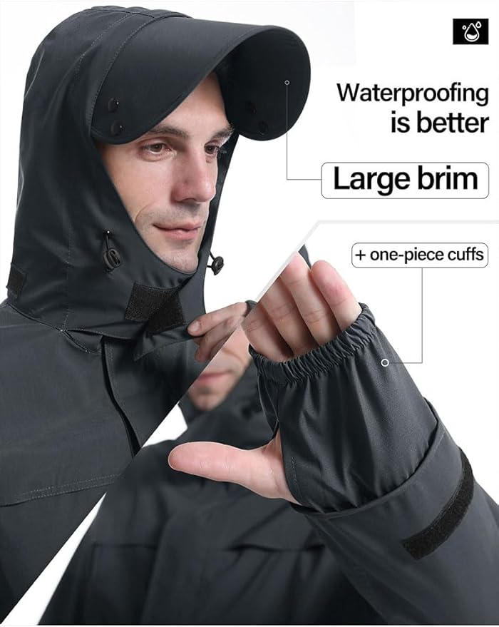 - Waterproof: iCreek rain suit is made of nano polyester waterproof fabricit is waterproof, wear-resistant, soft, comfortable, etc. 100% waterproof and windproof, keep you dry even in light or heavy rain. Waterproof rating: 5000mm
