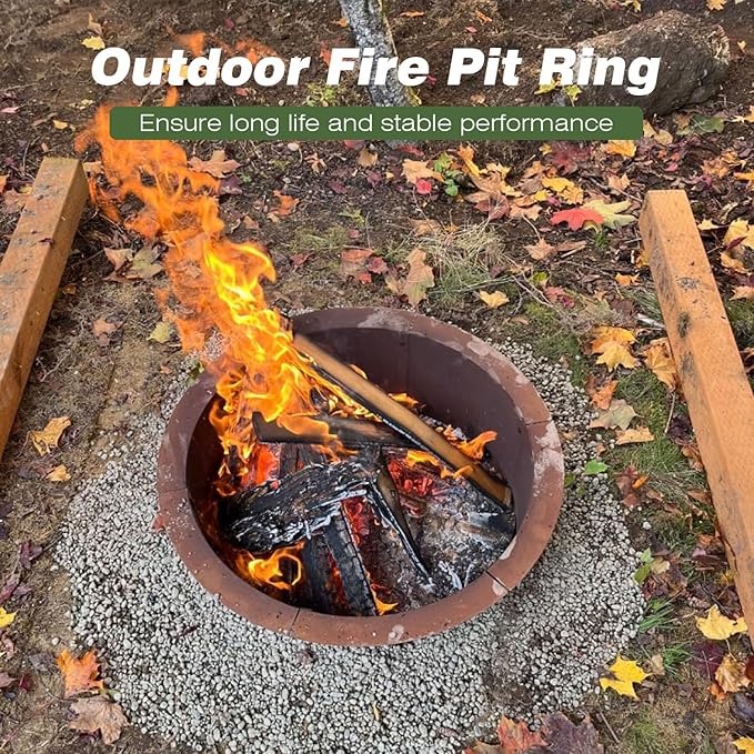 - ⛺️[ DESIGN ] : NOTE: FIRE PIT RING HAS NO BOTTOM!Fire Pit Ring is designed as a bottomless circle, which is easy to store when disassembled and does not take up too much space; After assembly, it can be inserted into the ground to control the burning of the fire. No need to worry about the fire getting out of control in any environment