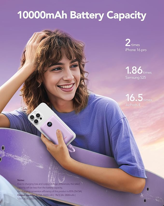 - [22.5W Super Fast Charging]Equipped with PD 3.0 & QC 3.0 technology, this portable charger juices up your iPhone 16 to 50% in 30 minutes* – 3x faster than standard chargers. (*Based on lab tests with iPhone 16 at 0% battery.)