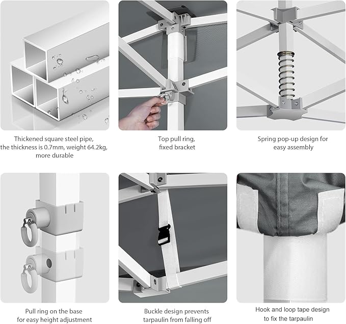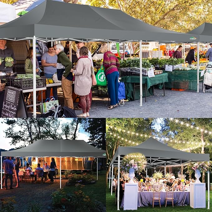 - 【2 Heights Setting】Canopy tent outdoor gazebo tent for parties 13x26 have 2 height settings . You can quickly and easily adjust two height positions by simply pulling the button outward: 231cm/90.9in, 238cm/93.7in, no tools required. COBIZI easy pop up canopy tent have upgraded buttons, which are easy to lock and release, adjust to avoid clamping your hand and be safer.