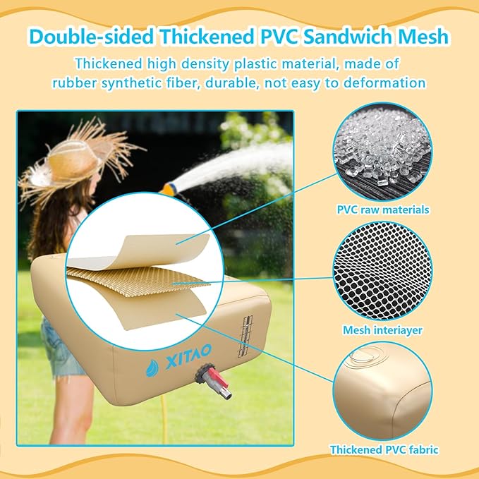 - 【Excellent Sealing】Our water storage bladder seams use high-temperature welding technology to withstand tremendous pressure without leaking. This improves the service life of the water bladder. Attached repair patches, when the water bladder is punctured by hard objects, the patches can easily repair the water bladder. Its reusable, simple frame assembly allows you to use it whenever you need our water barrel again.