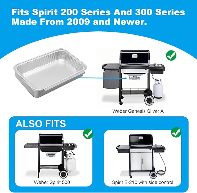 - Grease Catch Pan #83156 #93305 for Weber Spirit 200/300 Series.83156 Catch Pan Kit for 2009 and Newer Spirit 200 & 300 Series Grills; Genesis II 300 Series Gas Grills.Compatible with Weber Spirit e-210 e-220 e-310 e-320 e-330 grills drip tray. (2009 earlier MODELS). Fits Weber Spirit 500 520 530 700 700lx 730 grills catch pan.10 pack Heavy-duty 6415 aluminum foil Disposable Aluminum Foil Drip Pan,Grease Catch Pan 6415 for Weber Spirit