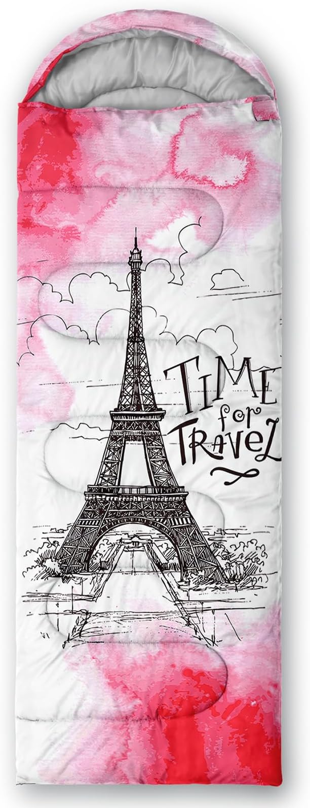 - 【Fits For 3 Seasons】: Size - 31 by 90 inches (W x D). Our Paris Architecture sleeping bag can be used in 3 seasons with a design temperature of 32℉-77℉(0℃-25℃). These Sleeping bags also have a weather resistant waterproof design to keep you warm and prevent you from any dampness.