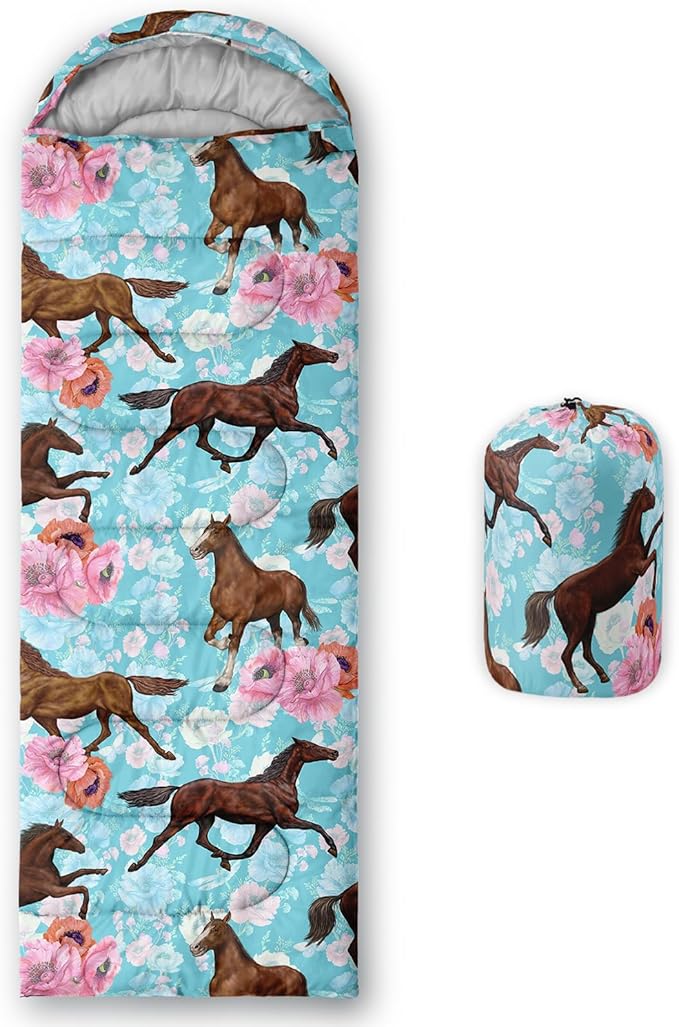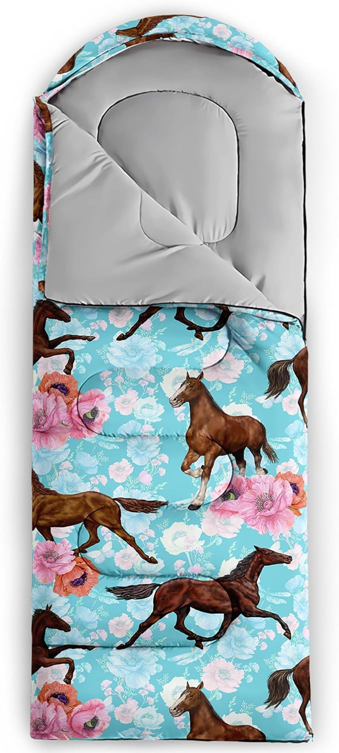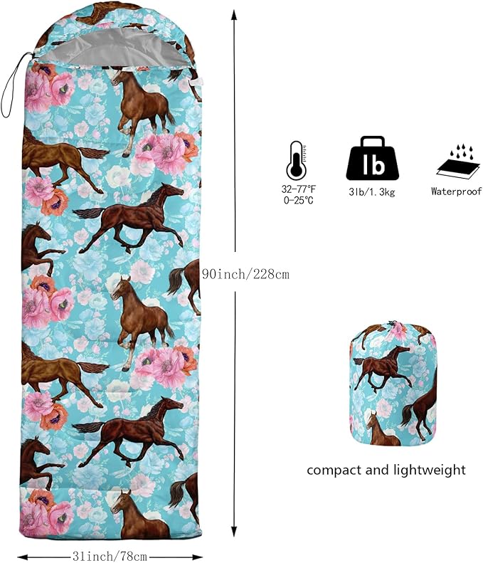 - 【Fits For 3 Seasons】: Size - 31 by 90 inches (W x D). Our Horses sleeping bag can be used in 3 seasons with a design temperature of 32℉-77℉(0℃-25℃). These Sleeping bags also have a weather resistant waterproof design to keep you warm and prevent you from any dampness.