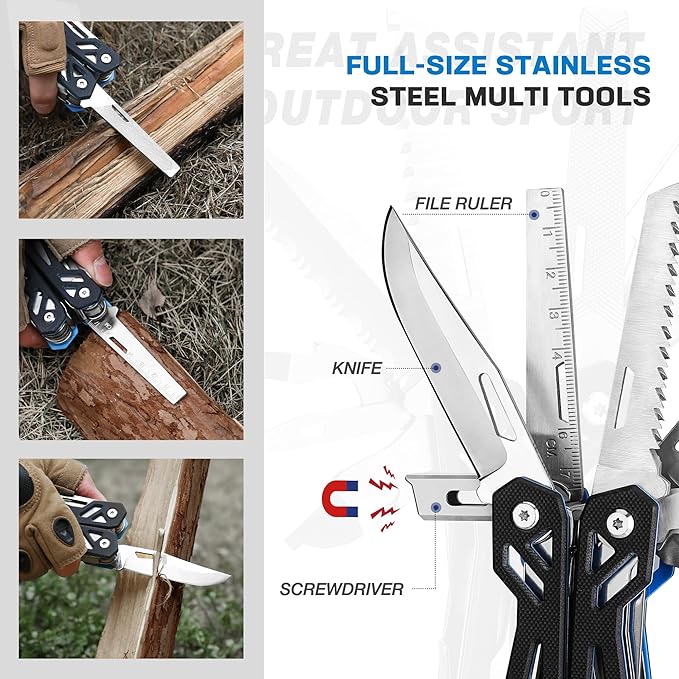 - Excellent Material & Construction - The whole multitool is constructed of ultra-durable stainless steel with G10 handle, which effectively prevents corrosion and guarantees long-term durability. It has an advanced 3D hollow structure and smooth surface and edge, which makes it comfortable to use