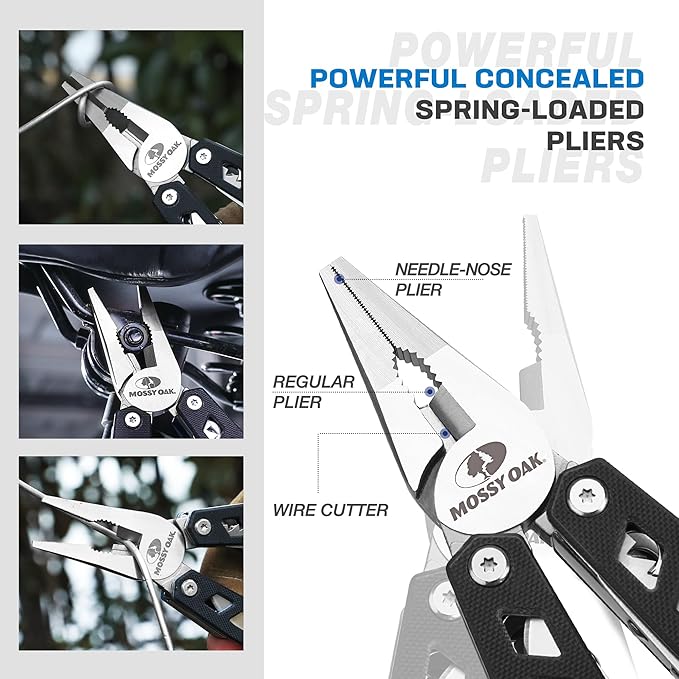 MOSSY OAK Multitool, 21-in-1 Stainless Steel Pocket Knife with G10 Handle, Screwdriver Sleeve, Self-locking Pliers with Sheath-Perfect for Outdoor, Survival, Camping, Hiking, Simple Repair