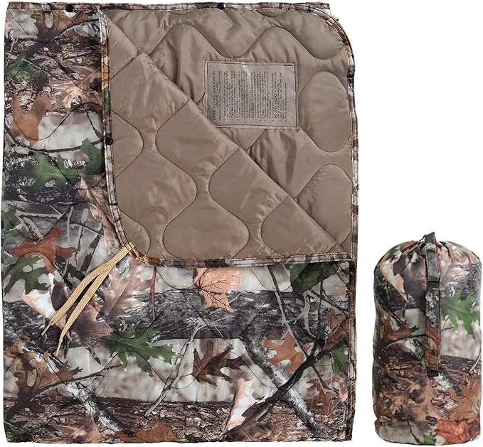 Woobie Blanket, Thermal Insulated Military Poncho Liner, Water-Resistant, Portable, Insulation, for Hiking, Survival with Compression Carry Bag (Tree Camo Bionic)