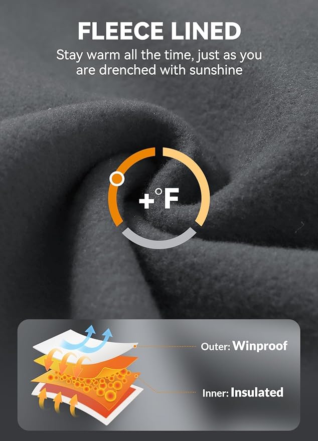 • Warm & Water Resistant:Soft fleece inner layer traps heat to keep you warm & comfortable, perfect for cold days under 40°F. Water resistant fabric can handle light rain for a short time or keep dry in snow days and provide wind protection.