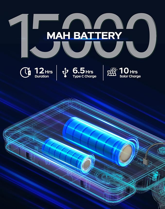 - 【Type C & Solar Powered】This outdoor camping light is 2 ways to charge. It takes about 6.5 hours to fully charge this led work light with stand by the Type C or you could put it right under the sun to charge it. It is a perfect rechargeable work light with backup charging method for more than one night outdoor trip. More over the light could also function as a power bank for the emergency.